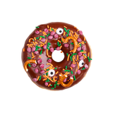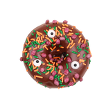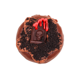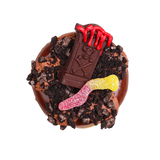 Red velvet gluten free cake doughnut, red glaze, cookie buttercream, chocolate cookie chunks & dark chocolate!