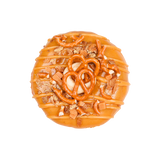Gluten free vanilla cake doughnut, caramel glaze, crumble & apple pie filling!